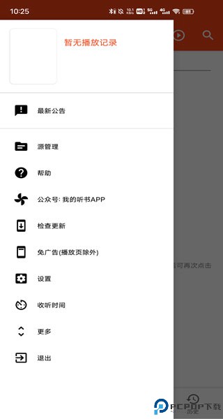 播放过的书籍都会有历史的记录,打开的时候会接着上次播放时间来播放;