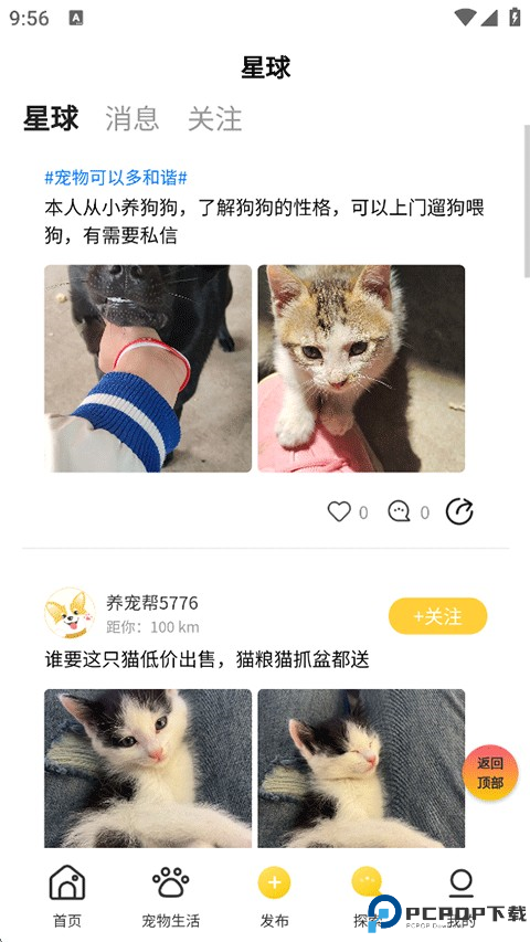对于个人宠物所生下的小崽子,可以在圈子发布赠送领养信息。