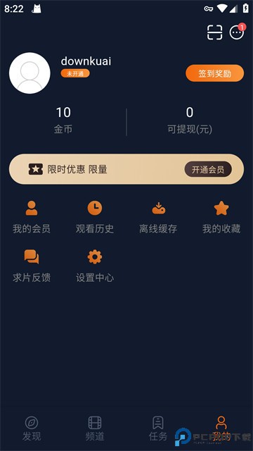1、打开软件点击我的,需要先注册登录才能观看动漫视频