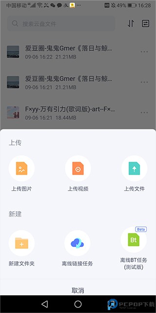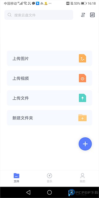 1、打开应用即可根据文件类型将文件上传到云盘中