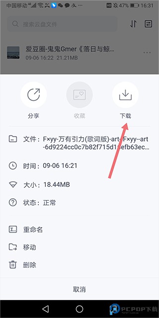另外还有一个更快捷的方法就是在文件页面中直接长按文件,之后就会在下方同样会出现下载渠道的