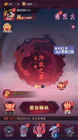 1、进入游戏后,点击“前往镇妖”按钮开始闯关。