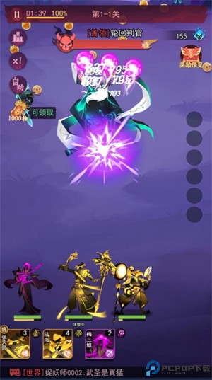 3、选好魂将后,角色会自动攻击,击败敌人后随机掉落玉符和符咒。