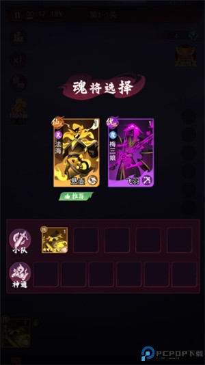 2、进入关卡后,先选择一位初始魂将进行战斗。