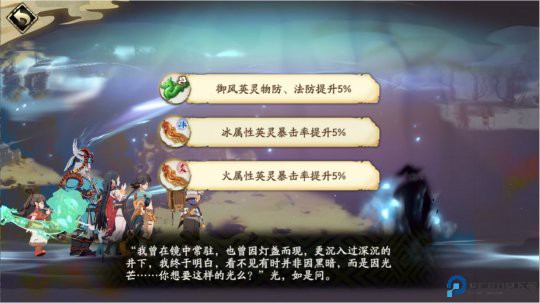 2、「灵门」:选择灵门会遇到不同的「加成类宝物」,少侠可以根据自身阵容进行选择。