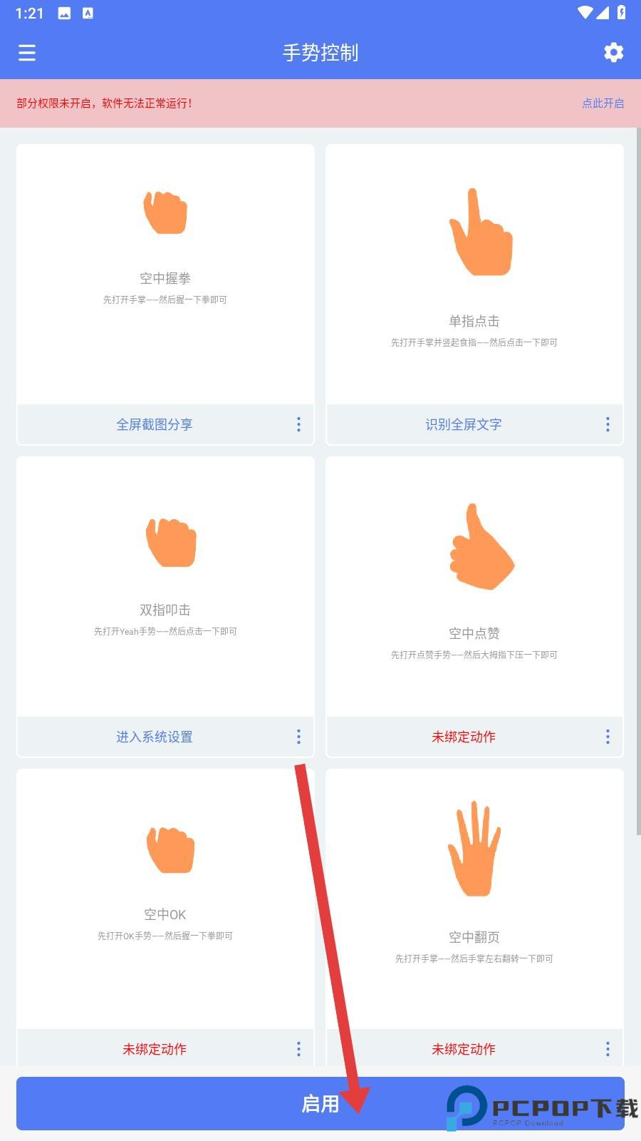 3、然后进入软件界面,我们看见有很多手势,我们认真阅读后,点击下方箭头指向的启用就可以啦。