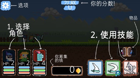 7、近战,范围,魔法。结合3个人物的技能有效击败敌人;