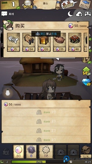 3、随着rank的等级的提升会解锁一些城市,炼金术,农场,轮盘,售卖物品的港口,和升级装备的港口