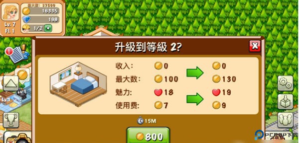 2、给设施升级。升级之后使用费会增多,而且到了5级之后,有的设施还可以合并!比如说浴室、客房。