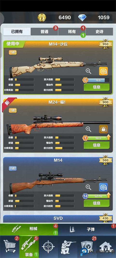 分为械和子弹界面,这里能够查看械和子弹的具体信息以及获取条件,后续的保养升级都在此处。