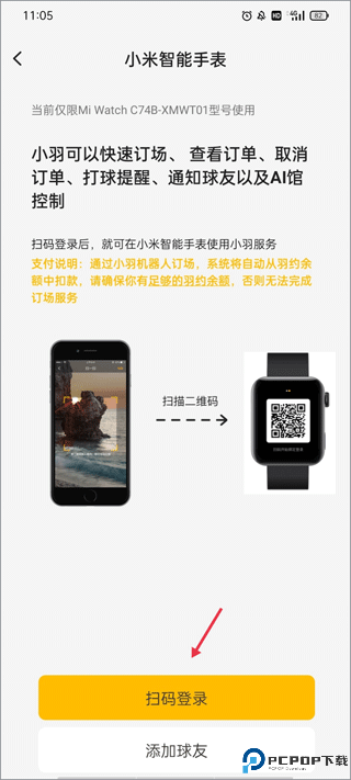 4、线上智能手表上的二维码展开,点击“扫码登录”按钮。