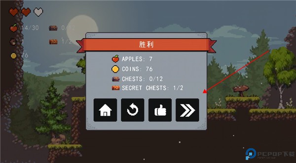 7、此件可以用来远程攻击,但需要收集苹果才能攻击,左上角就是你目前苹果的数量以及可攻击次数