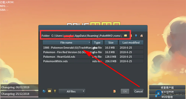 3、返回游戏界面,找到客户端管理下的黑/白ROM,点击后面的选择文件按钮,找到ROM文件夹下的黑/白ROM,双击即可
