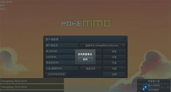 5、这时候,点击主界面的关闭按钮,系统会提示游戏需重启,点击好的以后,系统就自动重启了