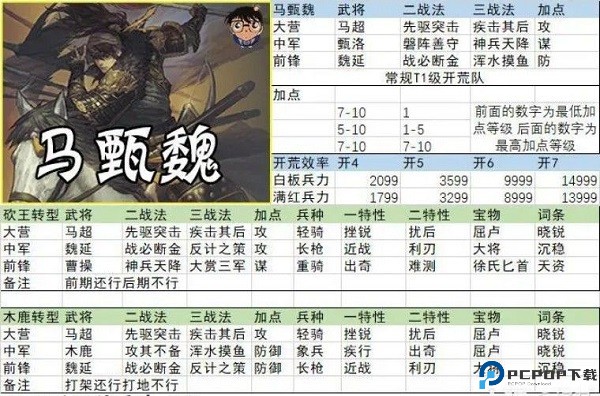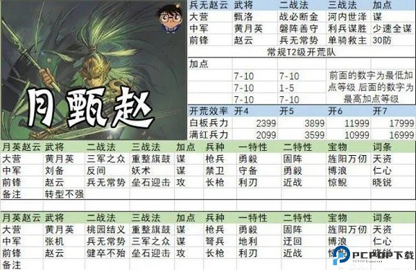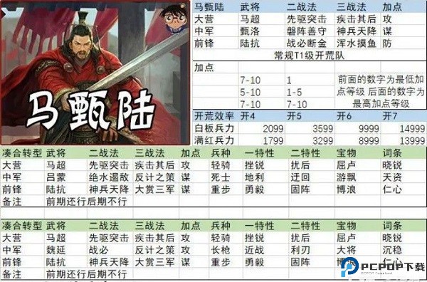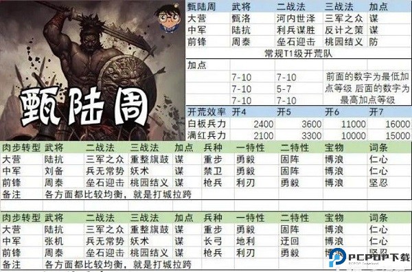 T1总共有三支队伍,马超就占了两只,剩下的一支自然就是我们的美人计-周泰,周泰自从被研发出来就稳稳占据t1宝座,不吃红,开荒稳等等优点稳固了其地位,但同时也有个致命缺点,打不了高级城和高级地
