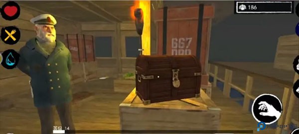 而这些材料怎么获得那?这个其实很简单。我们需要在商人来的时候,在他的船上使用贝壳进行购买。贝壳是需要我们在商人的船上和他进行交易,白点冲着宝箱,点一下小手,就可以卖给他东西换贝壳了。