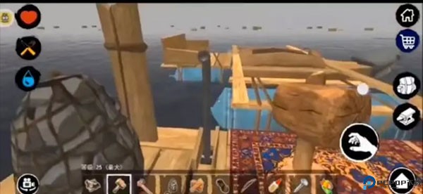 1、玩家们可以利用竹排获得更多的工具、食物、资源等等,然后在飘荡的岛屿上。