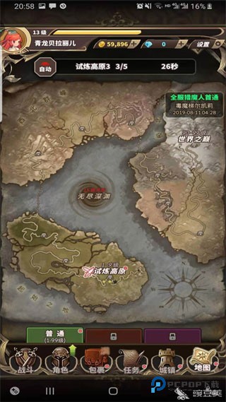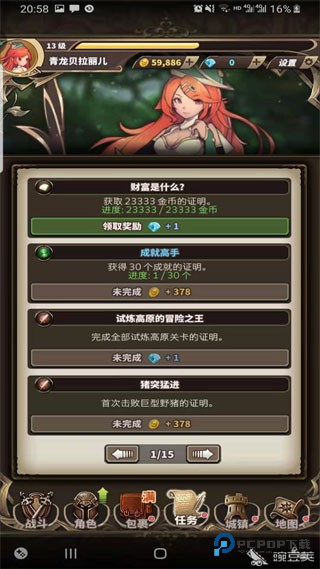 6、 挑战界面列出所有可完成的挑战,大部分挑战目标为通关特定关卡。完成挑战即可获得奖励。随着角色等级提升,将解锁更高级别的地图区域。主城提供交易功能。核心流程为推进关卡、完成挑战目标以快速提升等级。