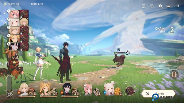 5、当所有角色全部选好技能后点击battle按钮就可以开始战斗,角色会自动释放技能。