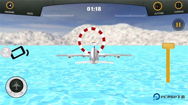 操控飞机穿越空中悬浮的环形标识,每成功穿越一个光圈获得对应积分。