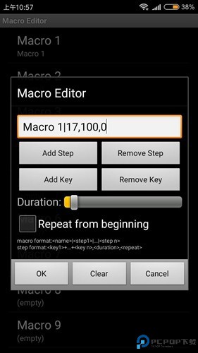 4、在Macro1里面输入17,100,0最后点击OK。(数字中间是英文逗号)