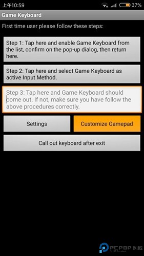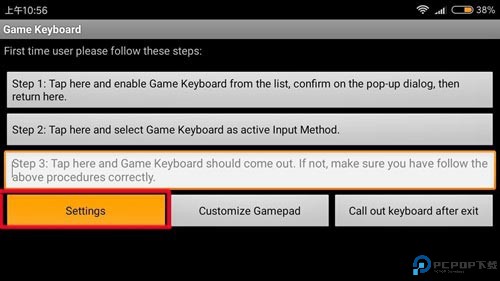 5、然后点击手机上的返回按钮,返回Game Keyboard的首页,点击右下角的Customize Gamepad。