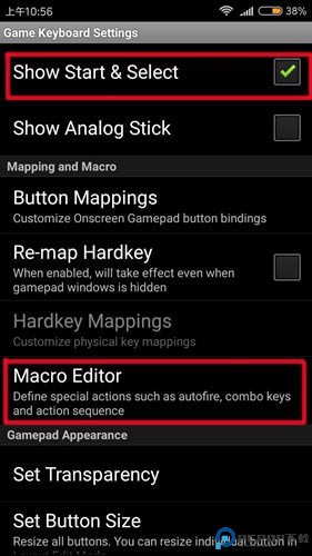 2、点击Show Start&Select,勾选上。再点击下面的Macro Editro。