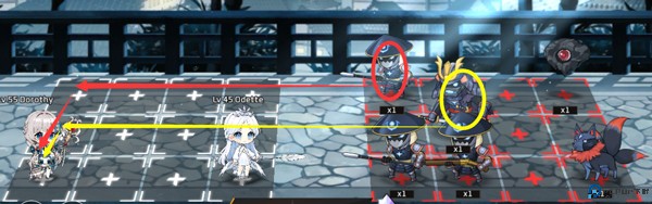 这样站位的原因是可以多嫖1-2次远程攻击,近战晚点挨打(但是注意1号位的角色会受到敌方远程攻击1-2次)