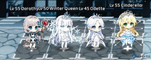 在敌方没有击退角色的情况下,站位如图所示,1排弓箭手,2排法师,3排近战,最后治疗。