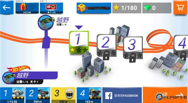 5、通关控制油门和刹车控制车辆,拾取赛道上的金币通过关卡。