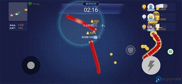 2、贪吃蛇大作战高分攻略:首先就是要想尽一切办法击杀你的对手。成功击杀对手的话,就能获得更大个的高分球,能够快速的增加你的长度,吃小球不如击杀一个对手。
