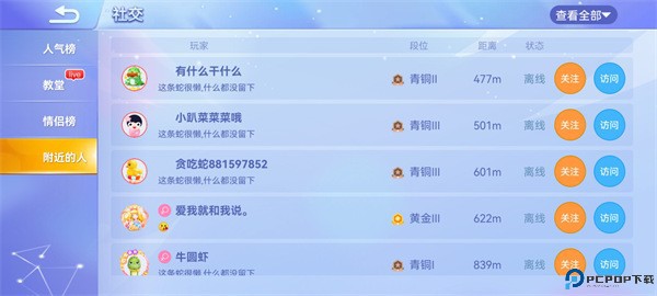 4、显示附近的朋友,点击关注。