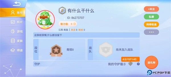 5、关注选定的朋友,可以显示该好友的游戏主页。