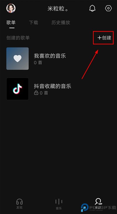 2、在【我的】页面,点击“歌单”--“+创建”。