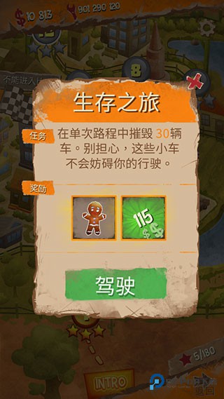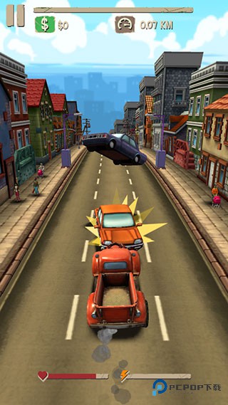 4、关键操作来了:瞄准其他车辆狠狠撞过去,累计够指定破坏值就能通关