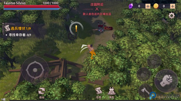 1、玩家可以在游戏中控制自己的角色随意移动,在森林中展开一场有趣的砍杀战斗。