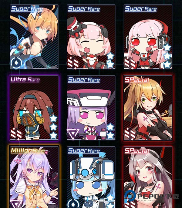 1、双画风切换功能:游戏采用日系科幻美术风格,提供标准版精致立绘与 Q 版战斗造型,支持即时切换。主界面角色可响应玩家手势操作进行互动。