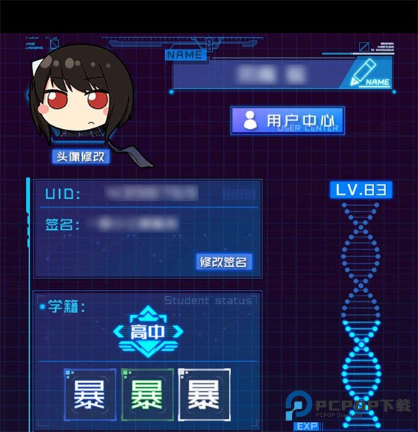 1、进入游戏主界面,点击左上角角色头像打开个人学籍页面;在学籍栏位中选择"+"图标,添加三个指定字符到对应框内,完成设置后抽卡将激活幸运加成。