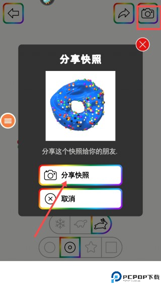 3、完成制作后,点击右上角的相机图标,点击【分享快照】即可将作品分享给朋友。