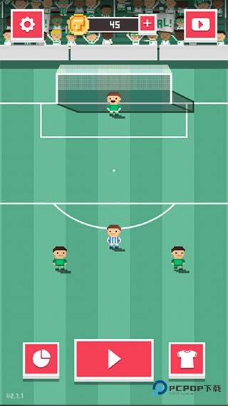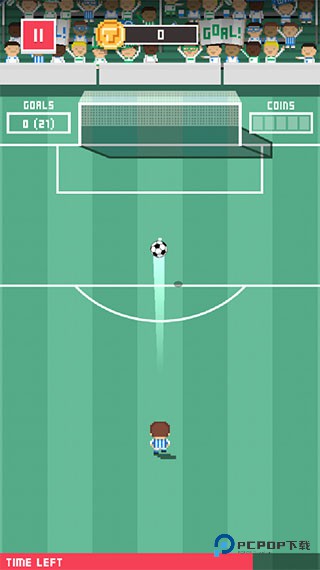 1、游戏结合足球主题与复古像素画风。玩家通过手指滑动屏幕绘制足球轨迹,突破防守球员完成射门,创造出独特的视觉体验。