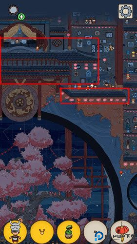 老鼠只会在晚上出现,我们先点击主席台屋顶碗里的时光水晶,这样就能来到晚上了,
