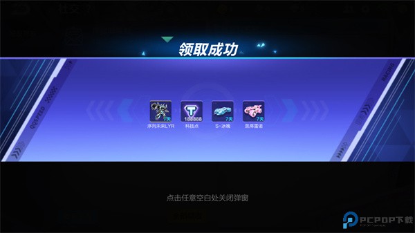 首次登录即送188888科技点、S—冰魄(7天)、凯蒂雷诺(7天)、T车序列未来LYR(7天)
