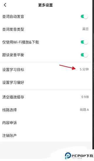 4、进入更多设置,找到设置学习目标,点击设置学习目标,点击进入。