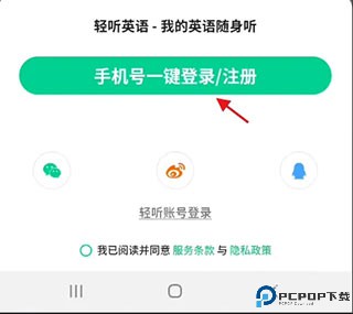 1、进入轻听英语APP,选择相应的登录方式,进行账号的登录。