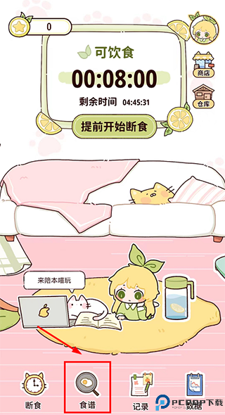 1、打开柠檬轻断食app最新版,点击下方的【食谱】图标