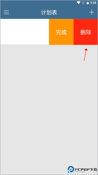 3、你会发现页面上已经有一个计划了,你还可以按住计划向左移动,就会出现删除按钮,如果想删除就可以点击按钮即可。