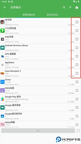 2、选择你要备份的应用点击备份。