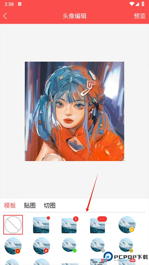 3、然后根据自己的喜好对头像进行编辑,编辑完成点击右上角预览