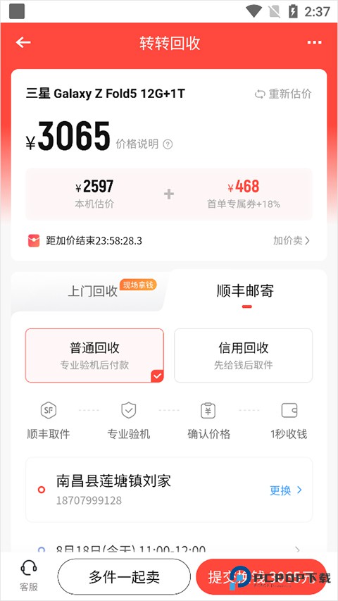 4、根据需求选择交易方式(例如在线邮寄、上门回收等)