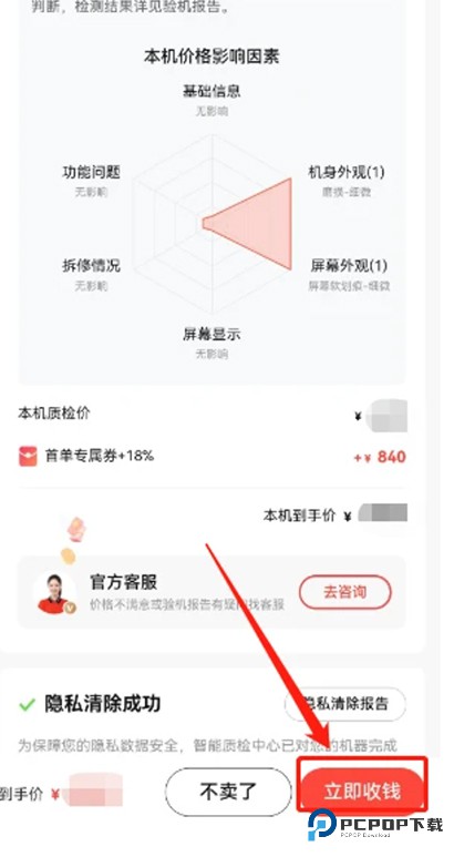 1、平台完成设备检验后,会在 24 小时内通过电话联系您,详细说明验机报告内容和报价信息。您若同意接受,需在订单详情页面点击【立即收钱】。